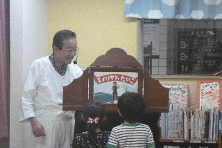 港北図書館の紙芝居は毎月の第3土曜日午後3時から「ヒゲの紙芝居オジサン」大森厚さんと交互に上演しています。今月8月は偶数月のため本来は大森さんのご担当。でも先月所用のできた私の代演をして下…